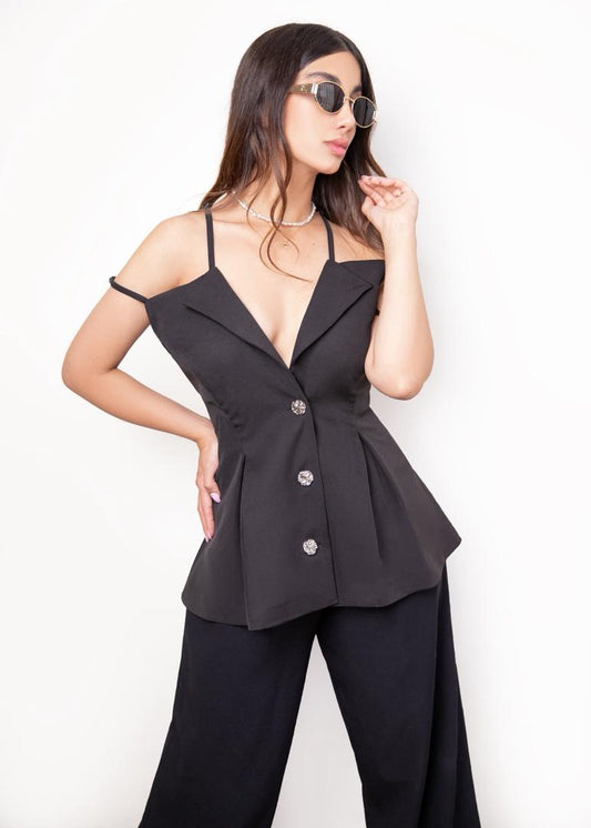 Shop NowThis stylish crop top is designed for both elegance and comfort. Featuring a flattering silhouette and an open back with an adjustable band, it allows for a customized fit that hugs your body just right. Perfect for pairing with high-waisted pants, skirts, or layered under a blazer for a chic look.