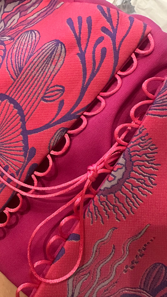 Shop nowThis strapless dress features a bold ocean-blue tropical print, a smocked bodice for comfort, and a halter tie for a playful twist. With a breezy side slit and lightweight fabric, it’s perfect for sunny escapes.